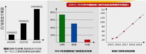 2016年中國智能鎖行業進入快速發展周期,預計中國智能鎖滲透率從3%增長至2020年的19.7%。 預計到2020年,中國銷量或突破3200萬套智能鎖具。房地產、租賃市場及換裝市場需求巨大。