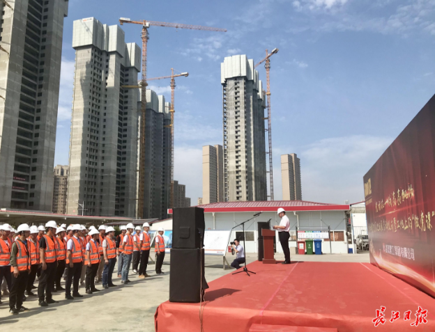 6月8日上午,位于經開大道旁的車都?春臺里項目工地80余名一線建設者在辦公區上了一堂“微黨課”。即日起,黨史教育巡回展將在武漢建工集團市內12個重點工地巡回展出,持續至10月。
