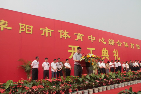 2010年6月17日上午十時整,由武漢建工股份有限公司承建的阜陽市體育中心綜合體育館工程舉行了盛大的開工奠基儀式,隨著主持人莊嚴宣布培土奠基儀式正式開始,頓時萬炮齊鳴,禮花齊放,這標志著武漢建工在皖北的發展又邁出了堅實的一步。